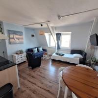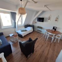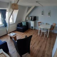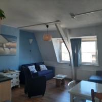 2en Stock (kein Aufzug!) – Wohnzimmer mit Schlafcouch (1 Person) – Küche mit Herd, Kühlschrank, Wasserkocher, Toaster und Filterkaffeemaschine – Schlafzimmer mit Doppelbett (160 x 200 cm) – Badezimmer mit Dusche