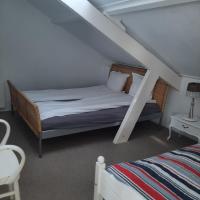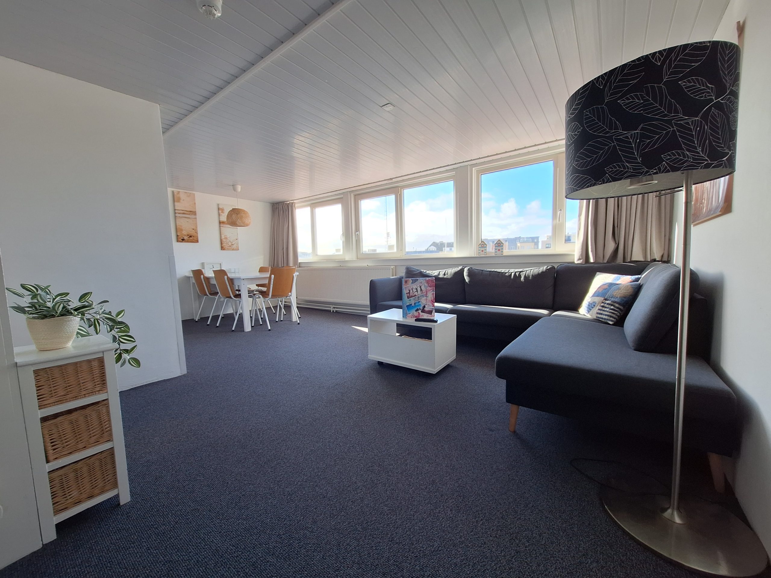 3en Stock (kein Aufzug!) – Wohnzimmer mit 90×200 cm großem Bett in einer Nische – Schlafzimmer links mit 160×200 cm großem Bett, Schlafzimmer rechts mit drei Betten (160×200 cm und 90×200 cm) – Küche mit Herd, Kühlschrank, Mikrowelle, Wasserkocher, Toaster und Filterkaffeemaschine – Badezimmer mit Dusche – Hunde sind nicht erlaubt